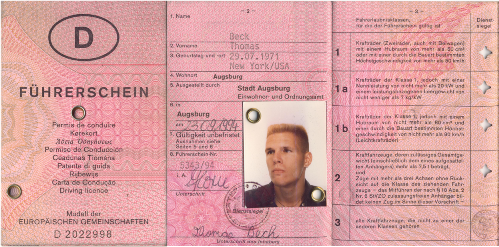 Spent nearly 8 years of his life in Germany. Went to university there, worked there, drove very, very fast there. The image is of his German drivers license - scary, eh?